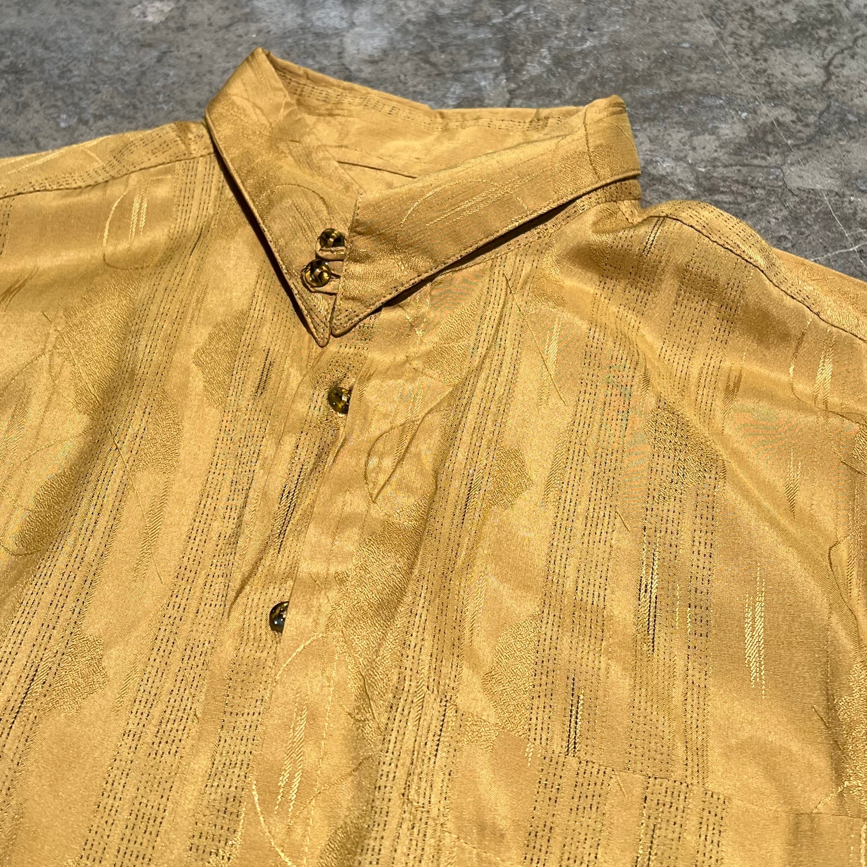 VINTAGE 古着 シルクシャツ 刺繍 長袖シャツ マスタード 【表参道t03】