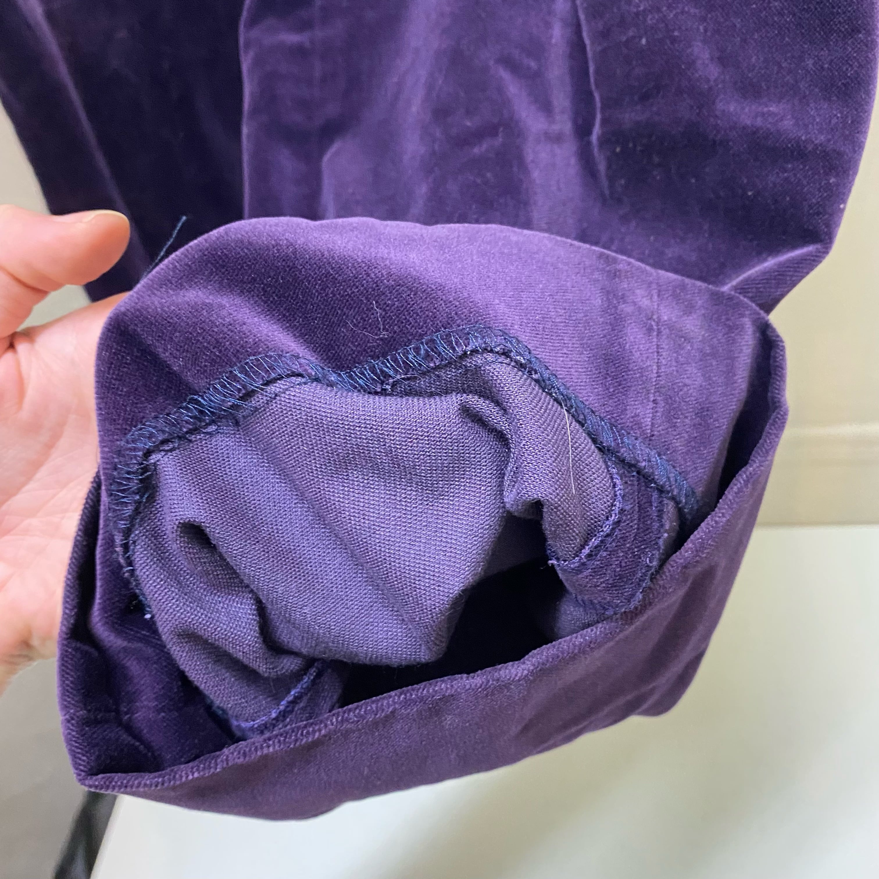 色は暗めのパープルでベロア素材のセットアップになります。成人式などの着飾りたいタイミングに是非。