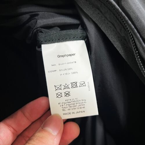 GraphpaperのGU211-90047B Nylon Back Packです。大容量かつ軽量なので、使いやすいです。