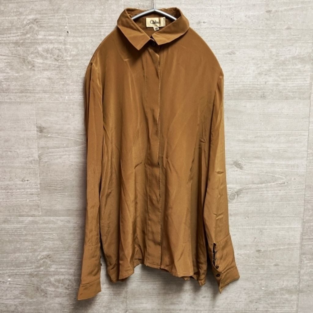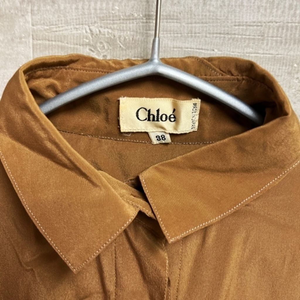 chloe クロエ ボウタイシルク シャツ ブラウス ブラウン系 size38 【中目黒b07】