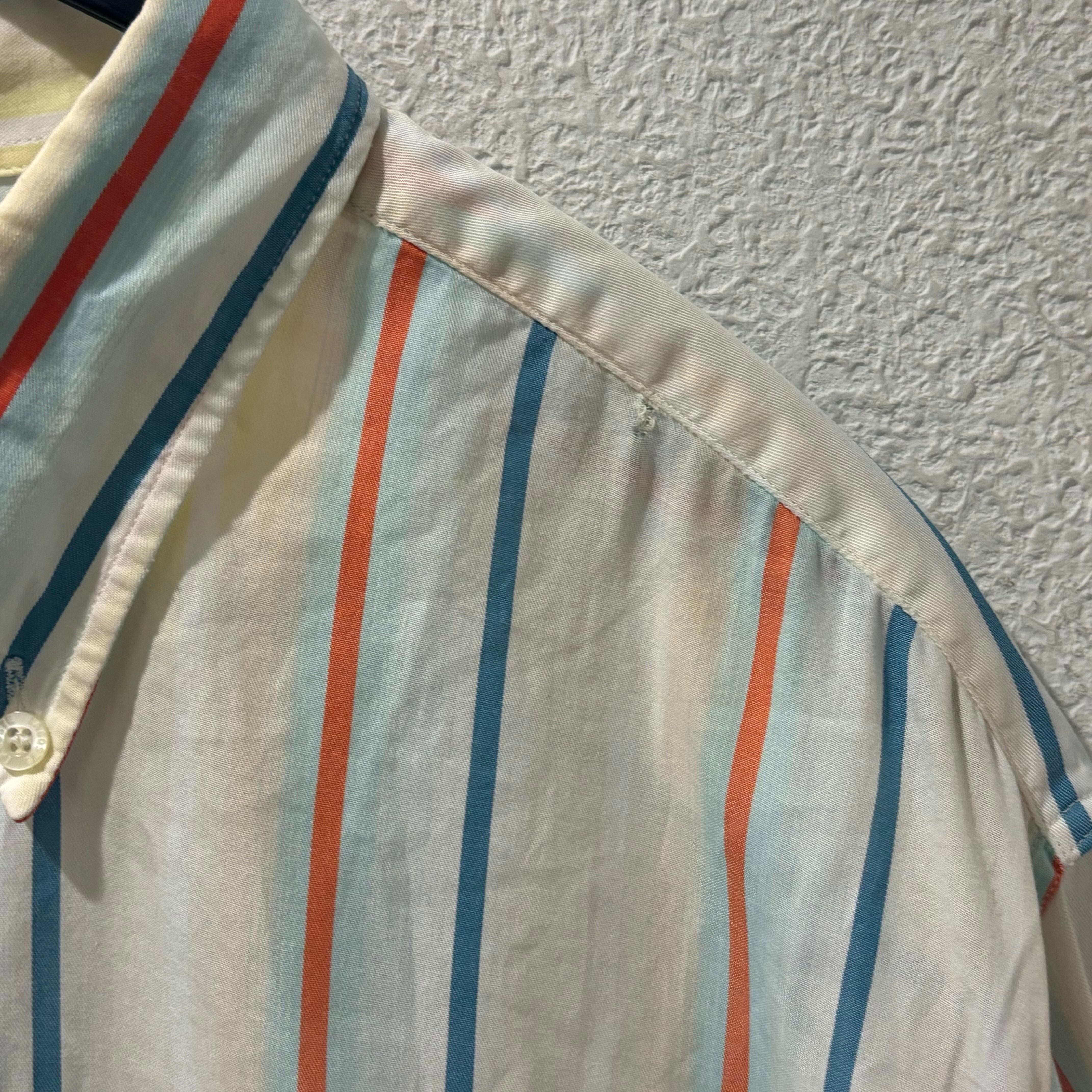 ラコステのストライプ半袖シャツです。 襟はボタンダウン仕様になります。