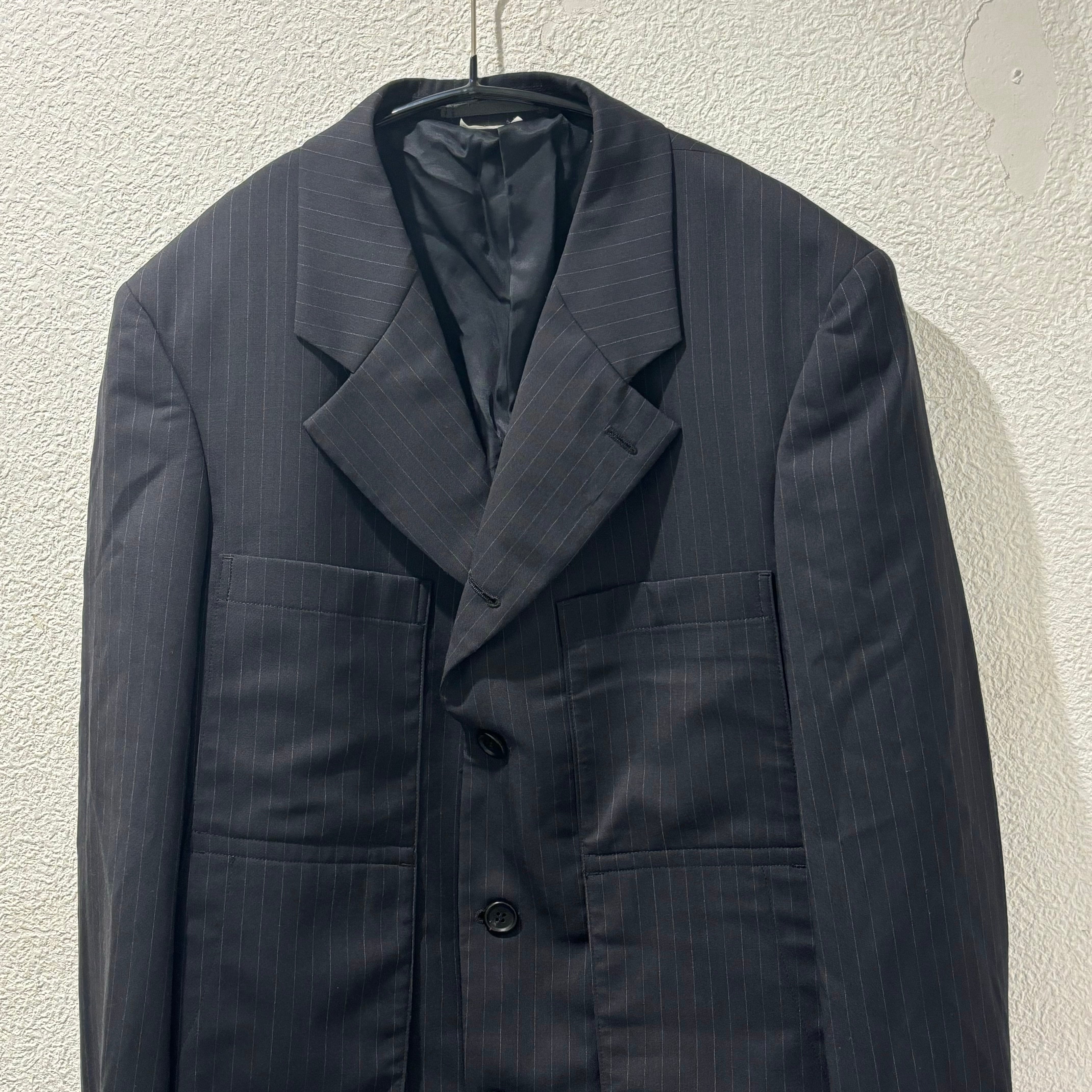 コムデギャルソンオムドゥの24SSシングルブレストのストライプテーラードジャケットになります。 パッチポケットが全部で四つ付いており大きめに作ってあるところも特徴的なアイテムです。
