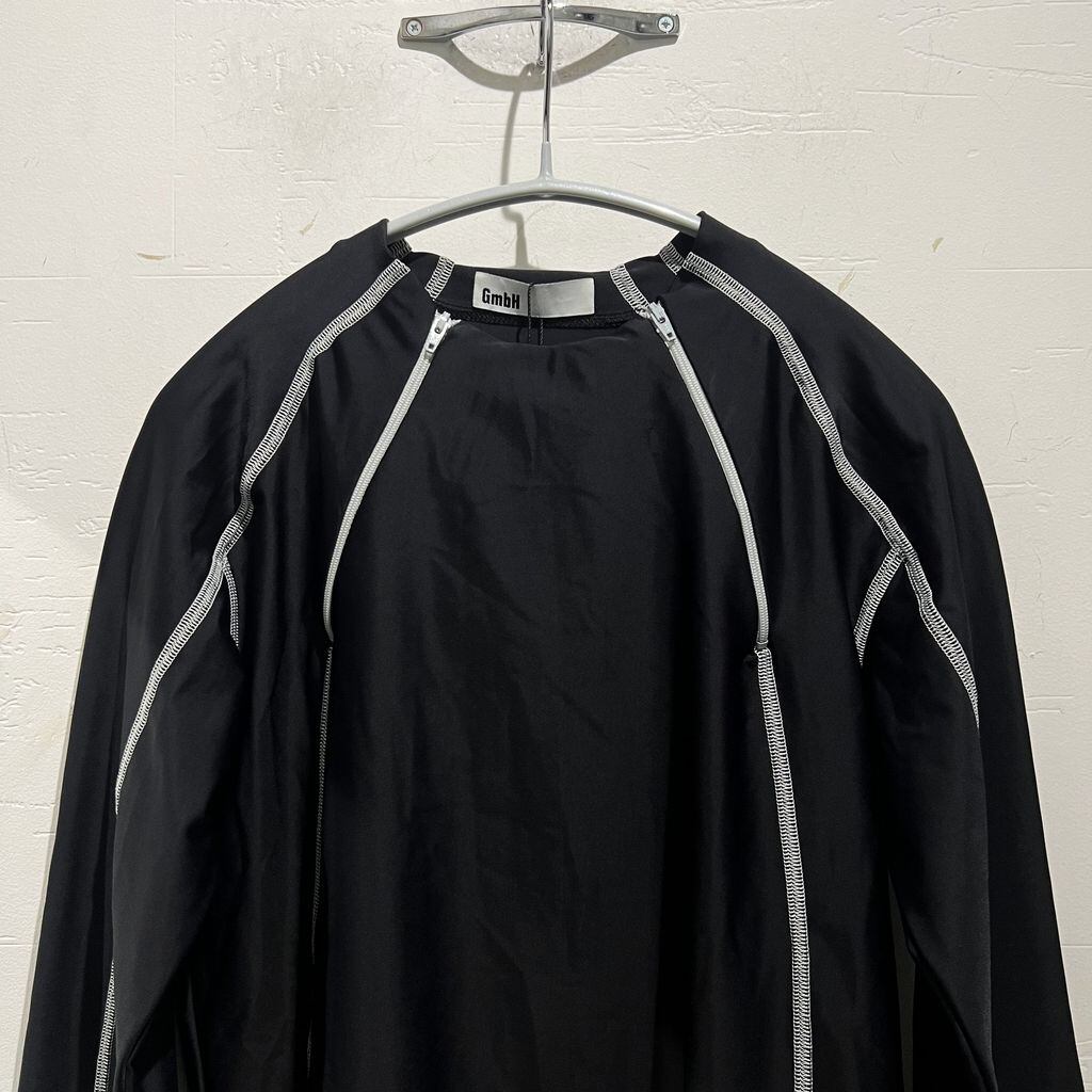 ストレッチの効いたトップスです。胸元のジップにより、多様な着方ができます。