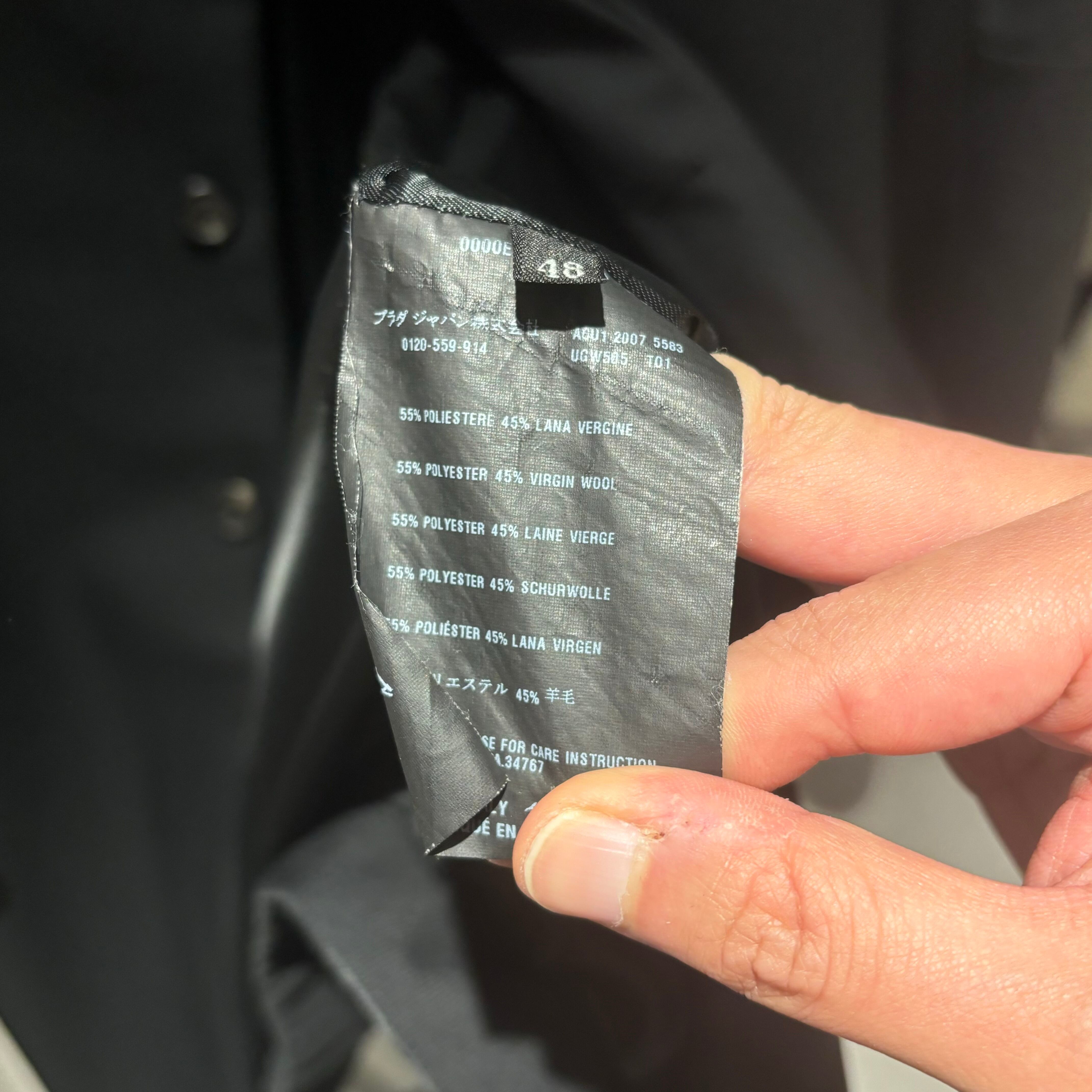 生地の切替が特徴的なプラダのウールコートになります。