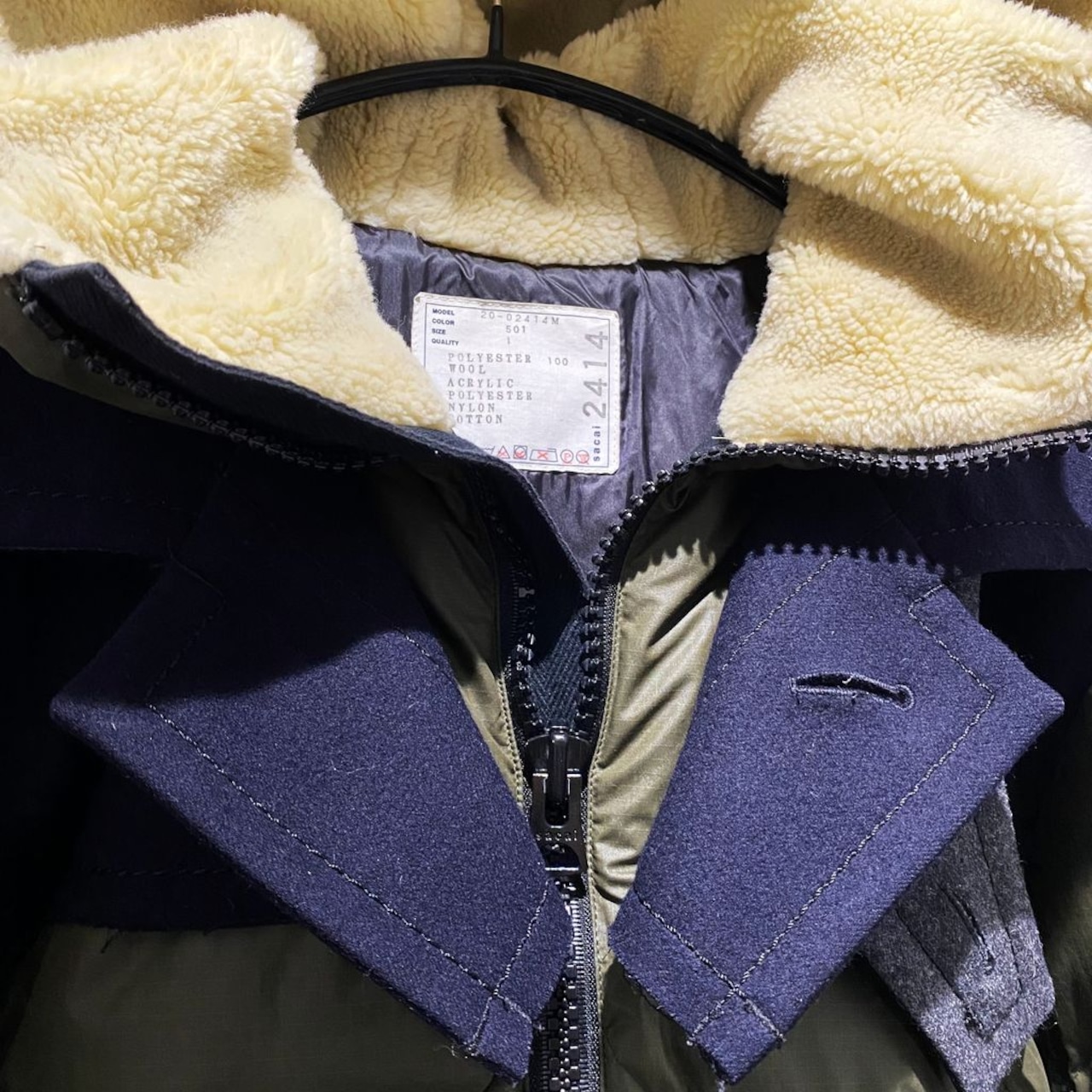 sacai サカイ 20AW キルティング パデッドジャケット カーキ size1 20-02414M【代官山R12】