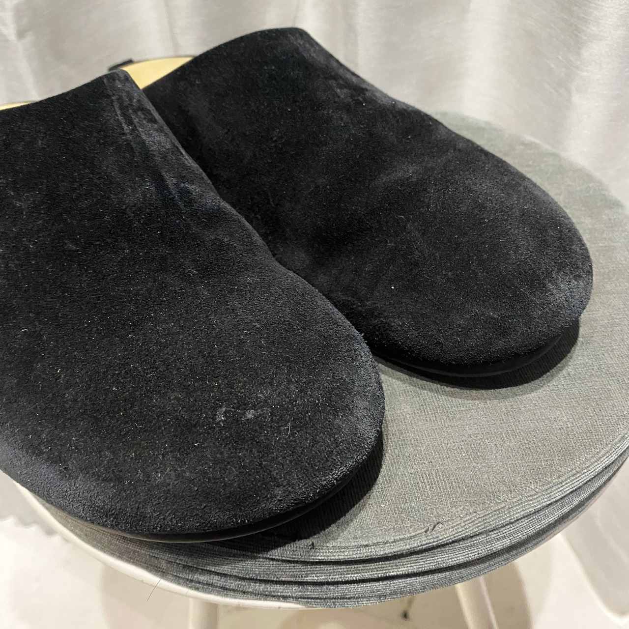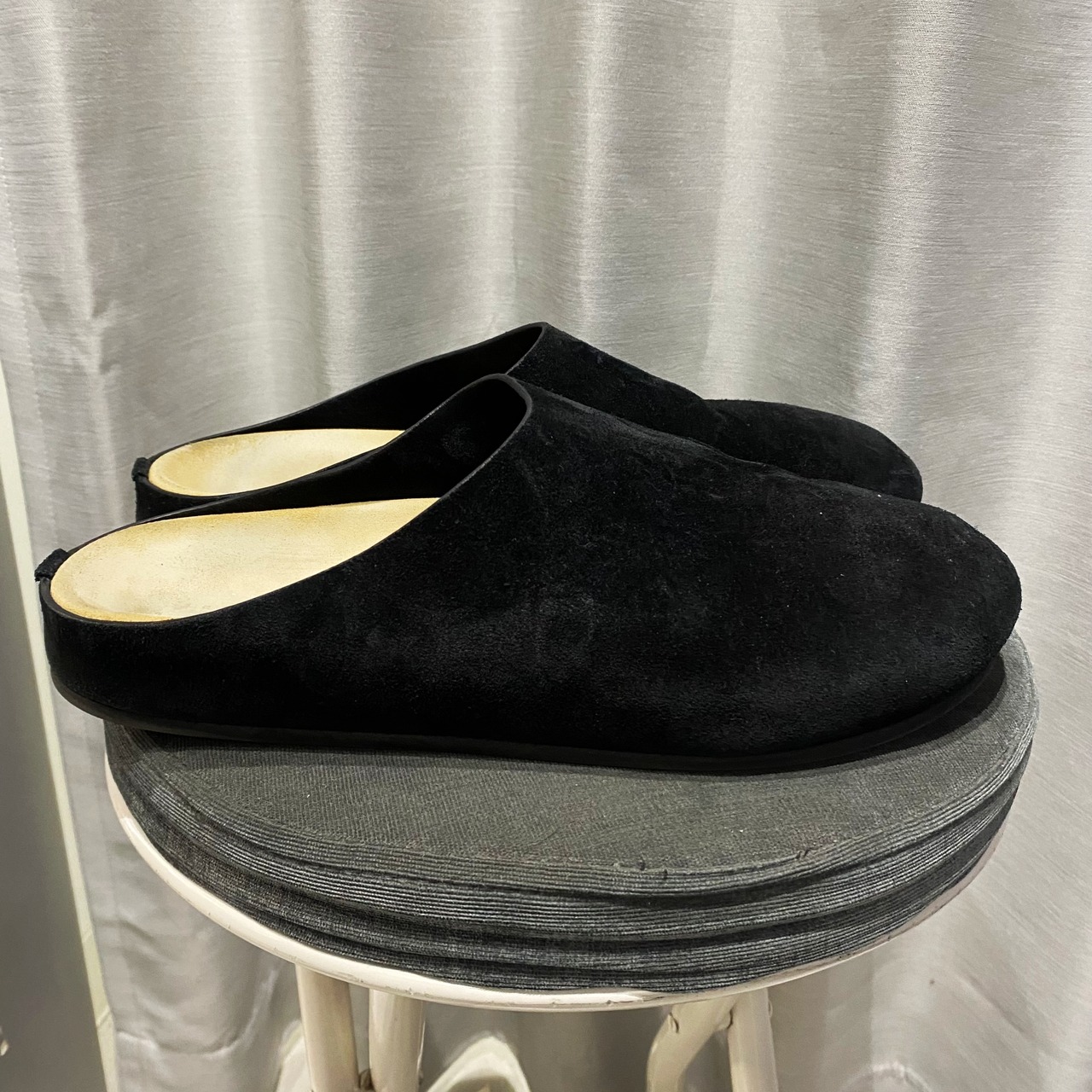 ソフトなカーフスキンスエードのスリッポンクロッグシューズです。