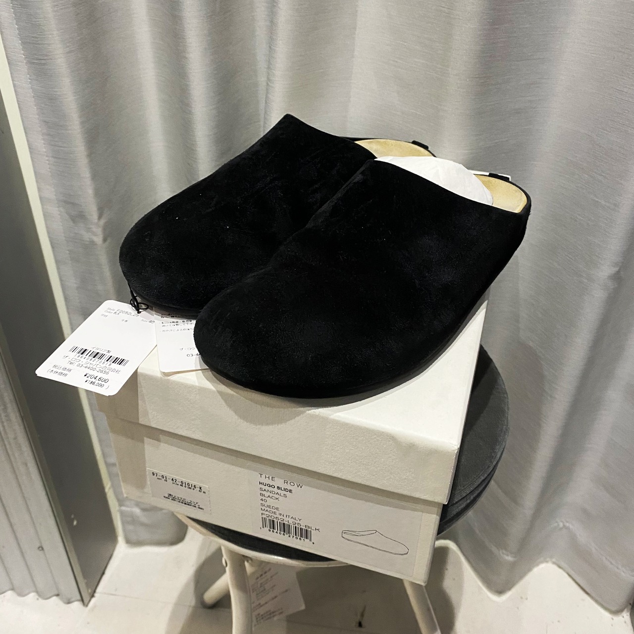 THE ROW ザロウ 24SS Hugo Slide スエード スライドサンダル ブラック size40 F2052L25【中目黒R12】