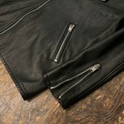 衿元のスタッズやジップ装飾、背面下部にも同様の装飾が施されており、上品さのあるレザージャケットでございます。