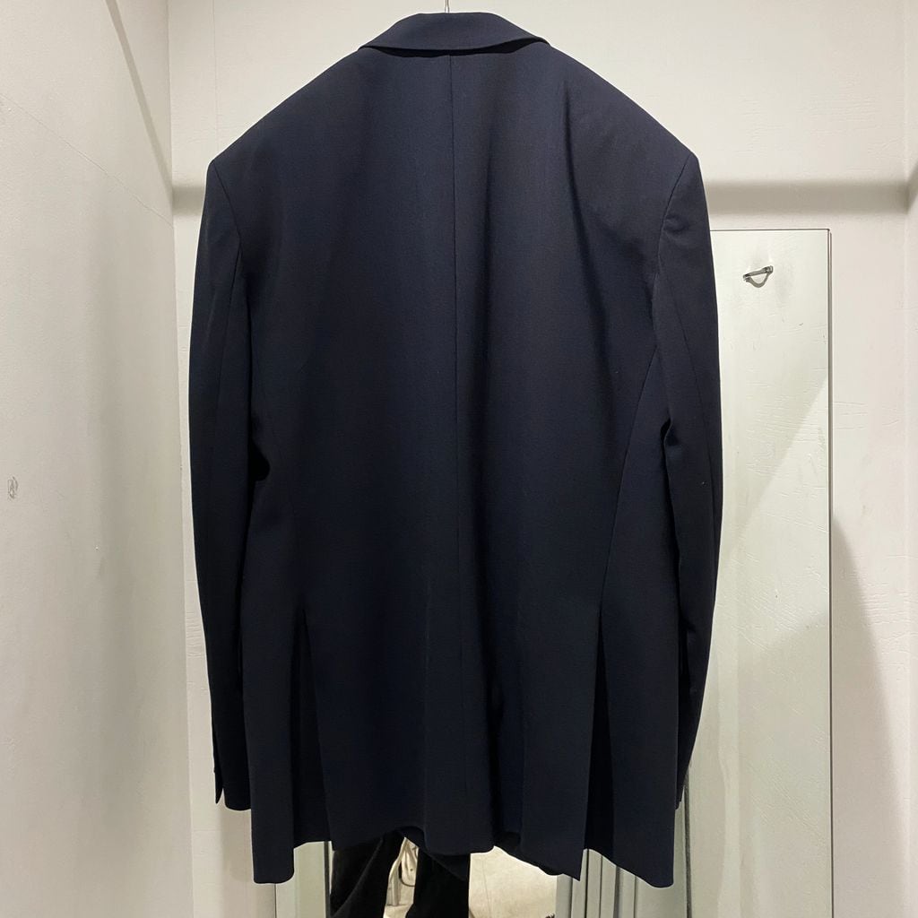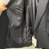 ライトストレッチ性ポリウールを使用したダブルブレストのテーラードジャケット。 ワイドなピークドラペル、胸にベソムポケット、フロントにフラップポケットが付いており、3つボタンのプラケット開閉式です。