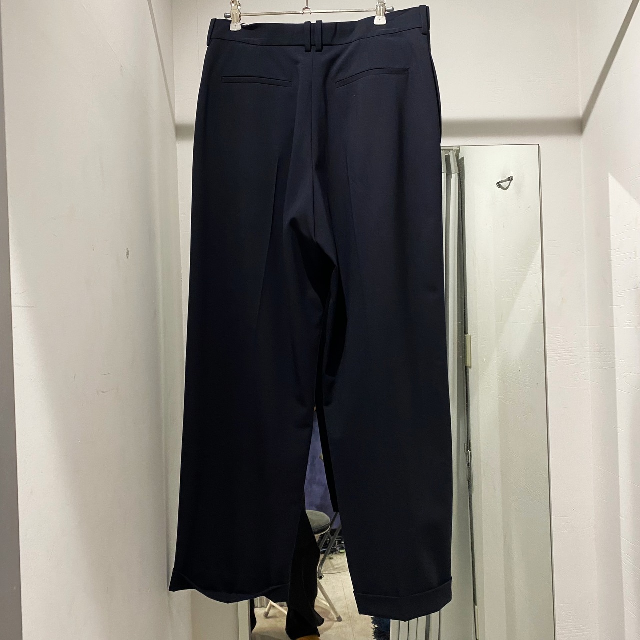 ストレッチ性のあるポリエステル x バージンウール混平織り生地のトラウザーズ。リラックスフィット。