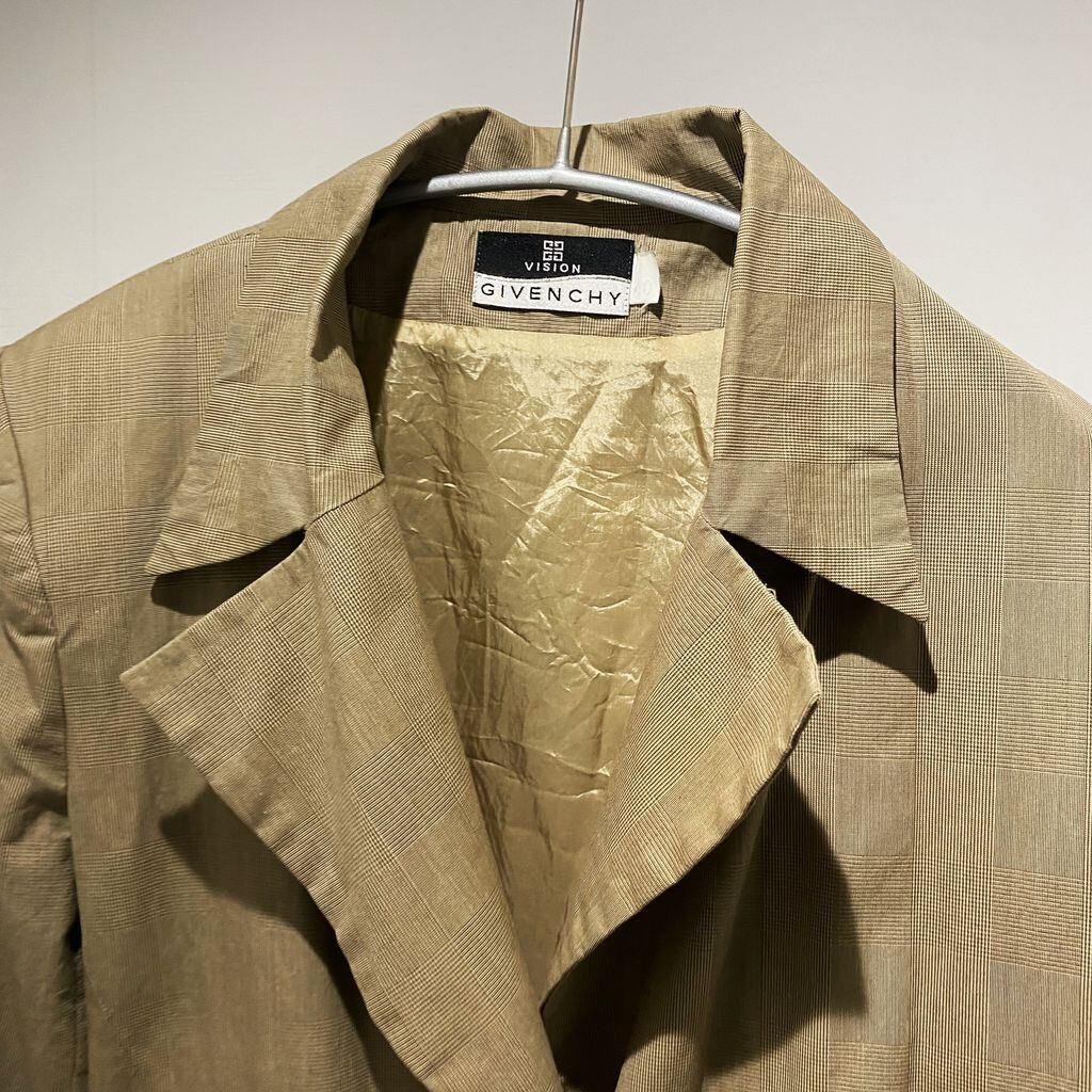 薄いチェック柄のトレンチコートです。