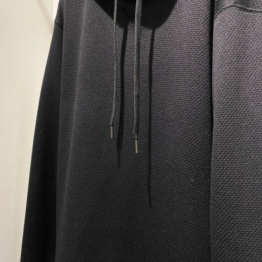 二層メッシュを使用した「U CH2 GFX MESH HOODIE」。 エレガントな流動性で2つの世界を行き来しながら、並置と二重性をあつかう。バスケットボールのユニフォームにインスピレーションを得た、背面の大胆なグラフィックが特徴的。