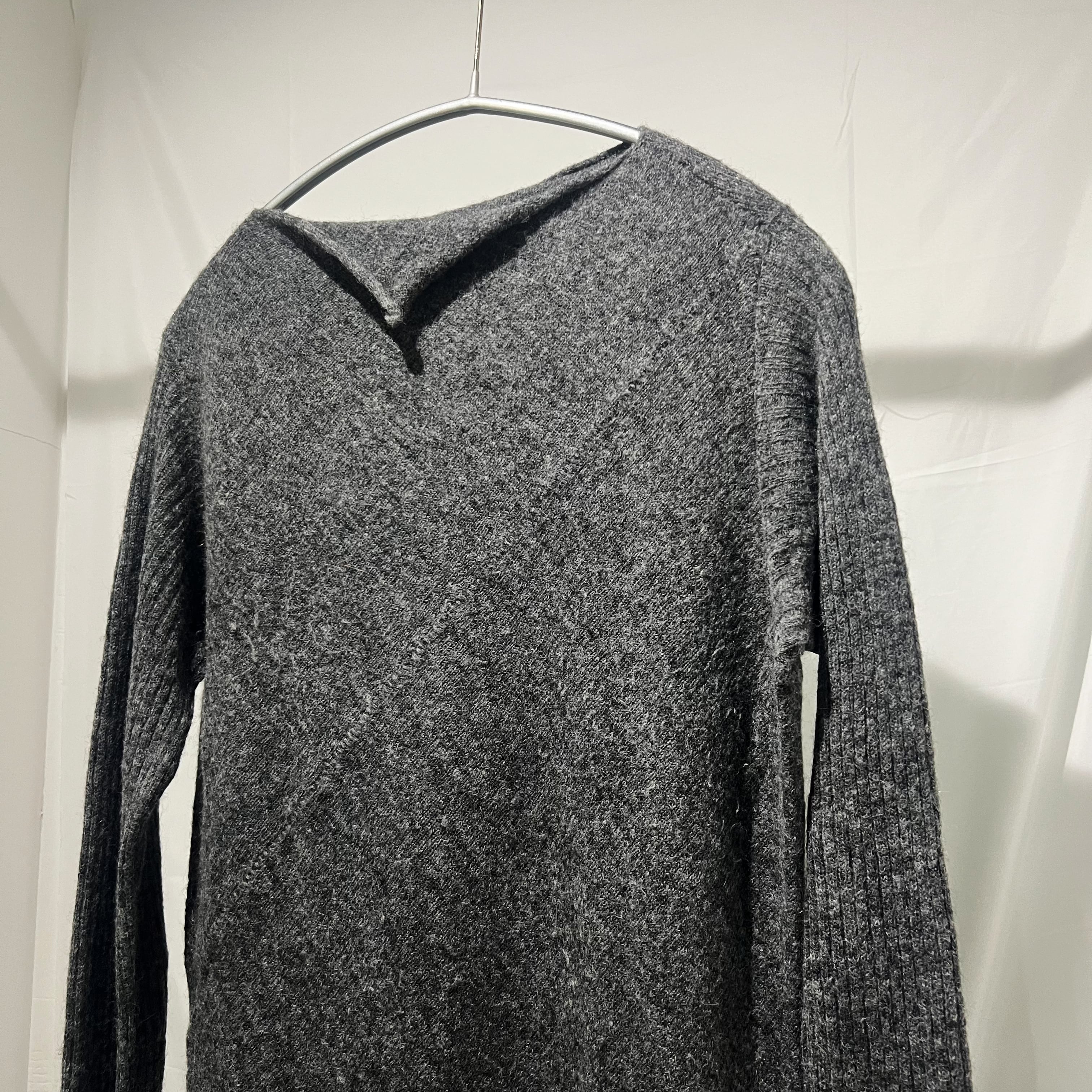 Rick Owens リックオウエンス 09FW CRUST Alpaca Wool Asymmetric Sweater with Rib-sleeve アシンメトリーニット グレー【中目黒R01】