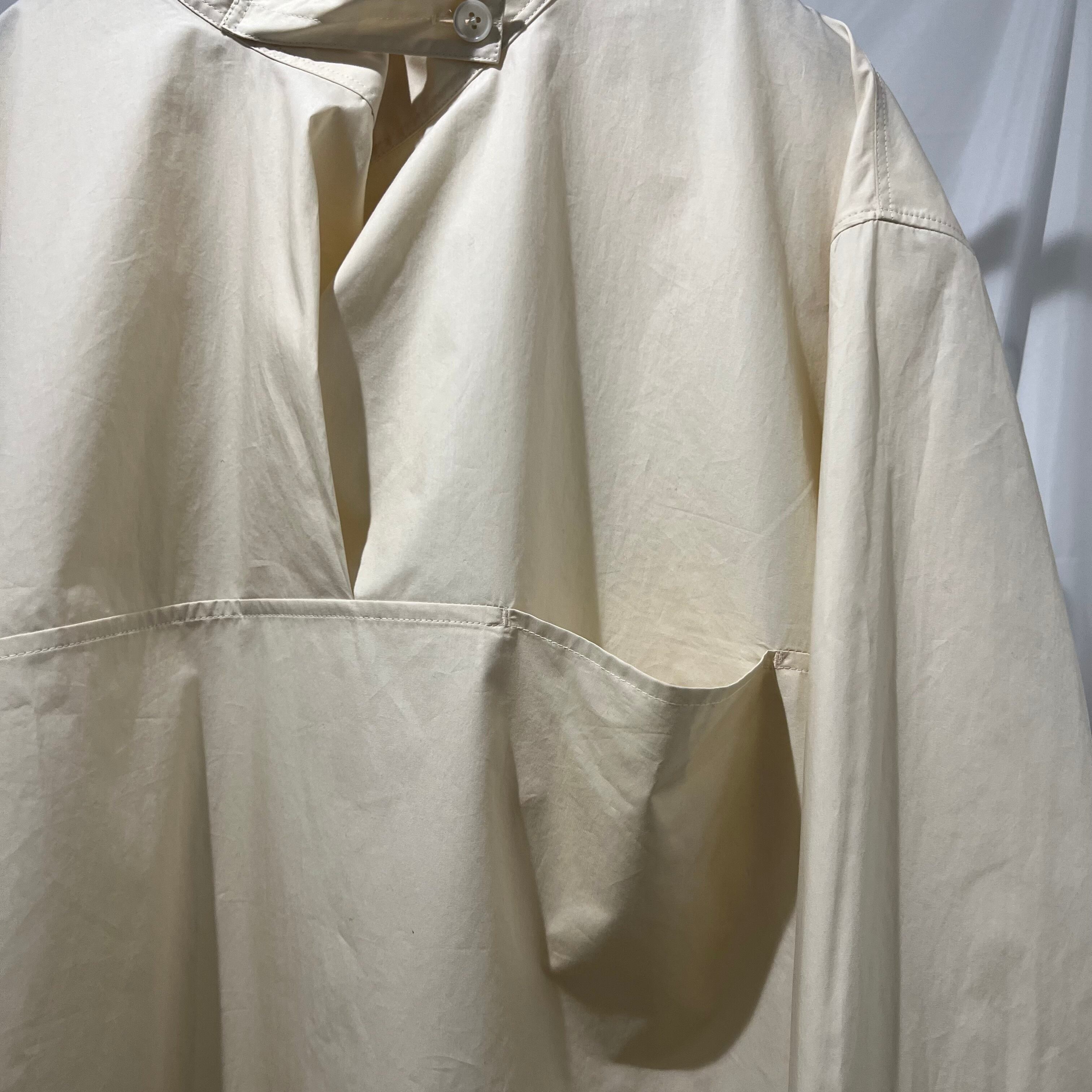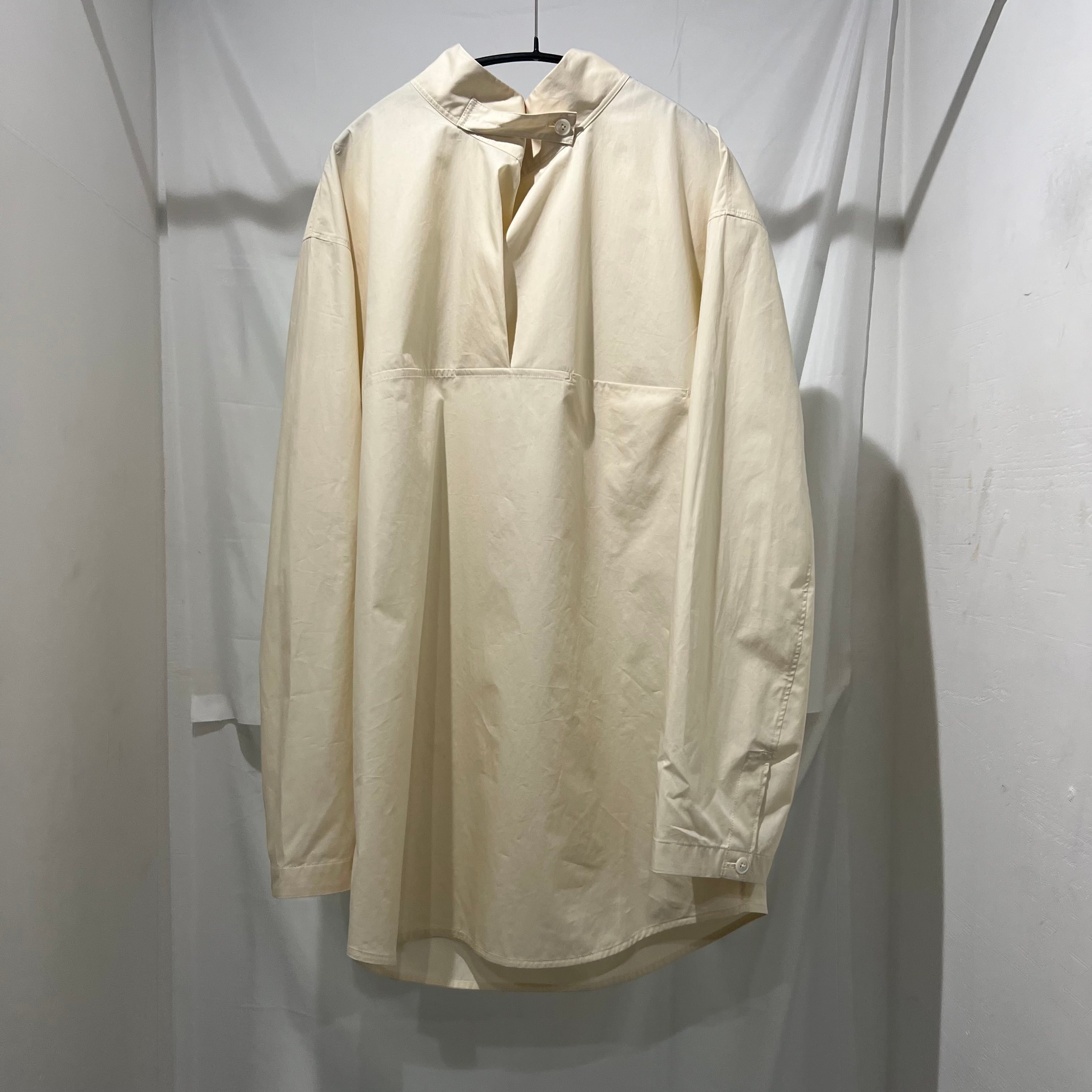 ハイネックのプルオーバーシャツです。ゆとりのある袖口や特徴的な襟元のデザインにより、綺麗めながらも独特な雰囲気を感じるアイテムとなっております。