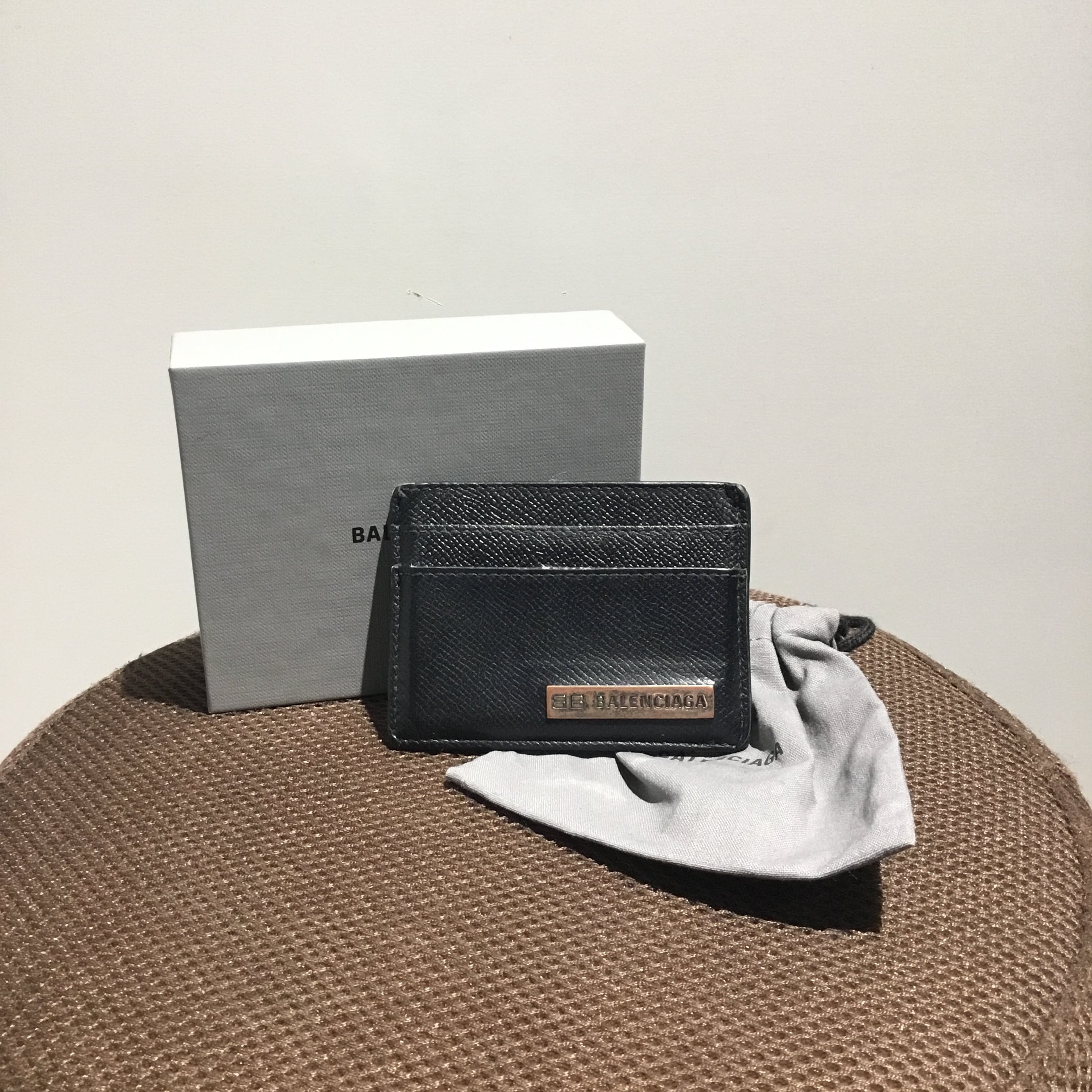 バレンシアガのBBプレートが付いているレザーカードケースになります。